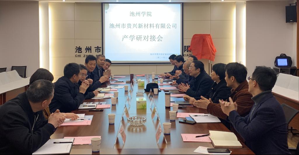 3月19日上午,beat365与池州市贵兴非矿新材料有限公司的产学研对接会成功举办,副校长汪贤才出席对接会。池州市及贵池区科学技术局、梅街镇党委等有关部门领导参会。