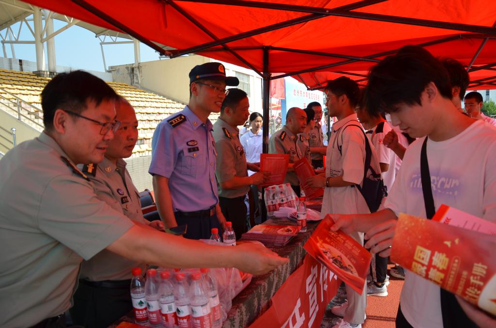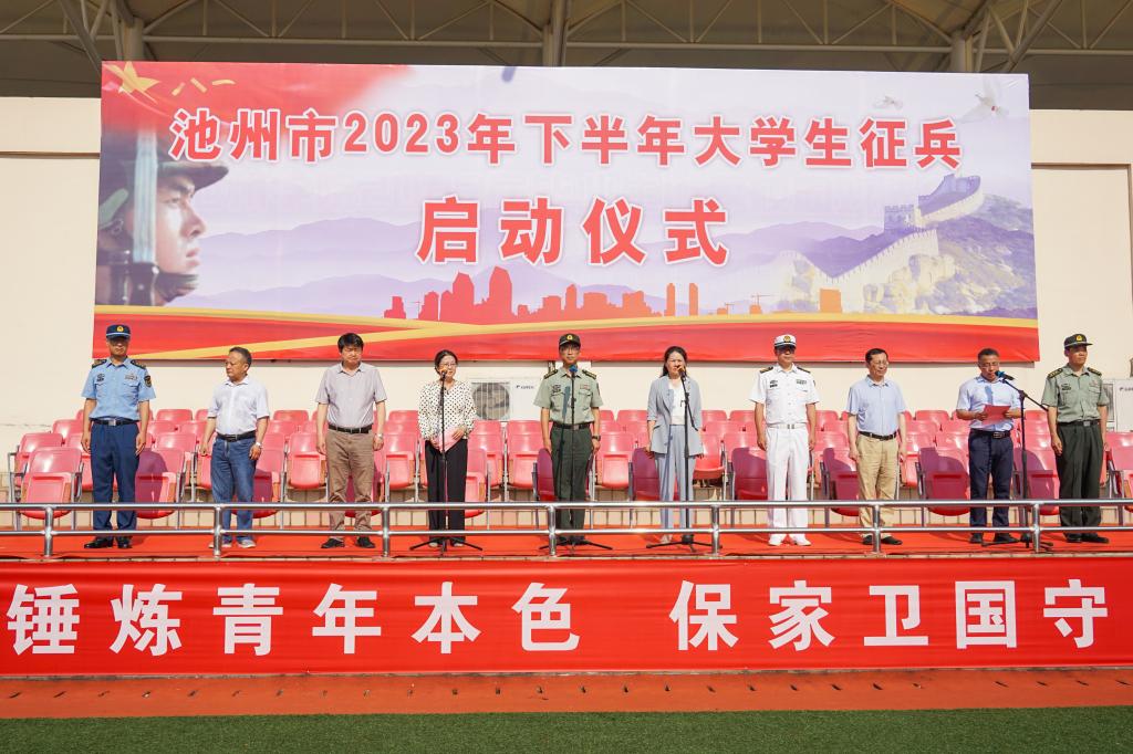 6月9日上午8时,池州市2023年下半年大学生征兵启动仪式在beat365举行。党委副书记、院长郑兰荣,池州市政府副市长曹霞,池州军分区大校司令员龚辉,池州职业技术学院院长汪贤才,安徽卫生健康职业学院院长张兵,市征兵领导小组副组长、池州军分区大校副司令员韩立民,党委委员、副院长阳光宁,池州军分区动员处处长渠胜红,贵池区区委常委、人武部上校政治委员冯涛等出席仪式。市征兵领导小组副组长、市政府副秘书长吴昔康主持仪式。