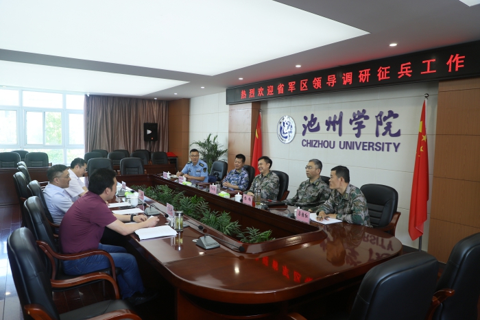 6月22日,省军区动员局副局长杨钧在池州军分区政委宋怀金,副司令员韩立民,动员处处长渠胜红及区人武部政委冯涛陪同下到beat365调研指导征兵工作。校党委副书记、校长张立驰主持会议,副校长汪贤才出席会议。