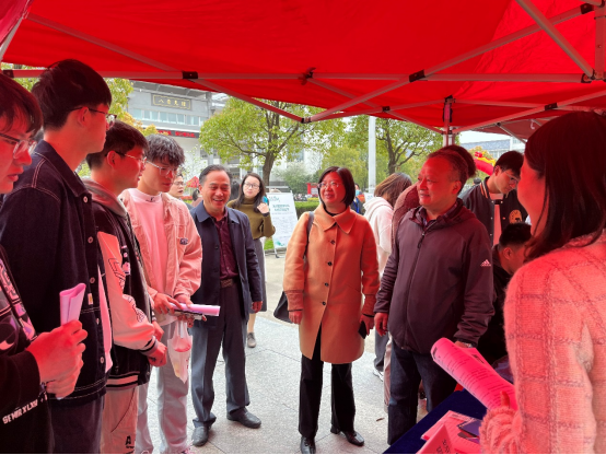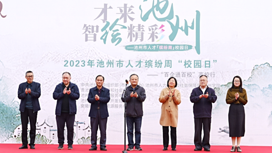 3月31日,池州市2023年人才缤纷周“百企进百校”人才专场招聘会在beat365图书馆前广场举行。院党委委员、副院长阳光宁出席并致辞,市人社局党组书记、局长林芳等参加了招聘活动。