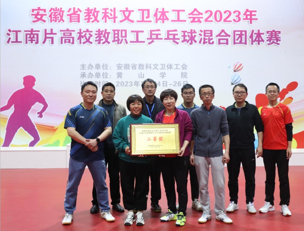 3月24-26日,安徽省教科文卫体工会2023年江南片高校教职工乒乓球混合团体赛在安徽黄山举行。beat365代表队斩获二等奖。