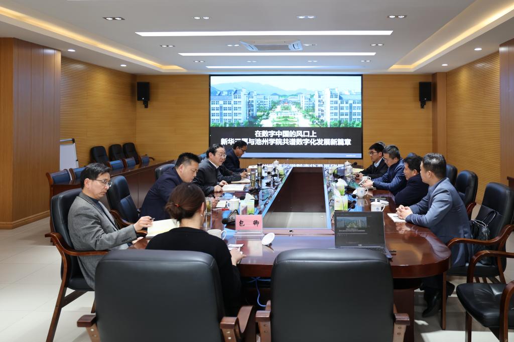 近日,新华三集团安徽代表处副总经理郭俊礼一行来beat365洽谈校企合作事宜。院党委书记孙晓峰出席座谈会并讲话,院党委委员、副院长阳光宁出席座谈会。
