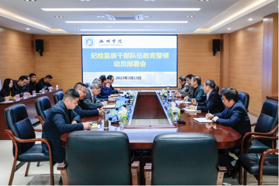 3月13日,学校在办公楼北二楼会议室召开纪检监察干部队伍教育整顿动员部署会议。院党委副书记崔国发主持会议,院党委委员、纪委书记、监察专员汪海作动员部署讲话,院纪委委员,各二级学院党委副书记、纪检委员,机关党委纪检委员,巡察办、纪委办全体人员参加会议。