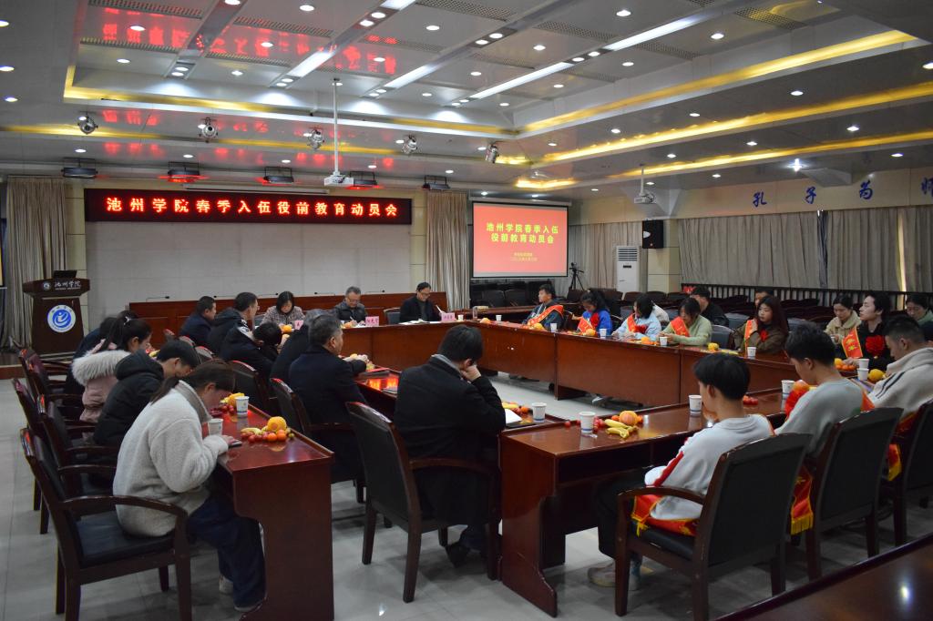 为做好入伍学生思想教育工作,助力预定新兵迈好军旅生涯第一步,确保兵员输送质量,3月3日上午,学校在办公南二楼会议室召开春季入伍役前教育动员会,院党委委员、副院长阳光宁出席会议并讲话。