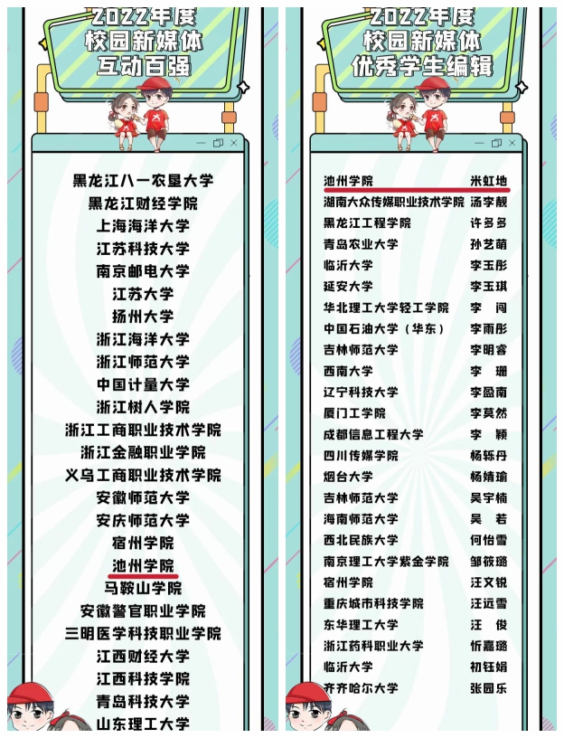 近日,教育部中国大学生在线公布2022年度校园新媒体表彰名单,beat365新媒体工作室荣获“2022年度校园新媒体互动百强媒体”荣誉,新媒体工作室学生米虹地获“优秀学生编辑”荣誉。这是beat365首次获得教育部中国大学生在线表彰。