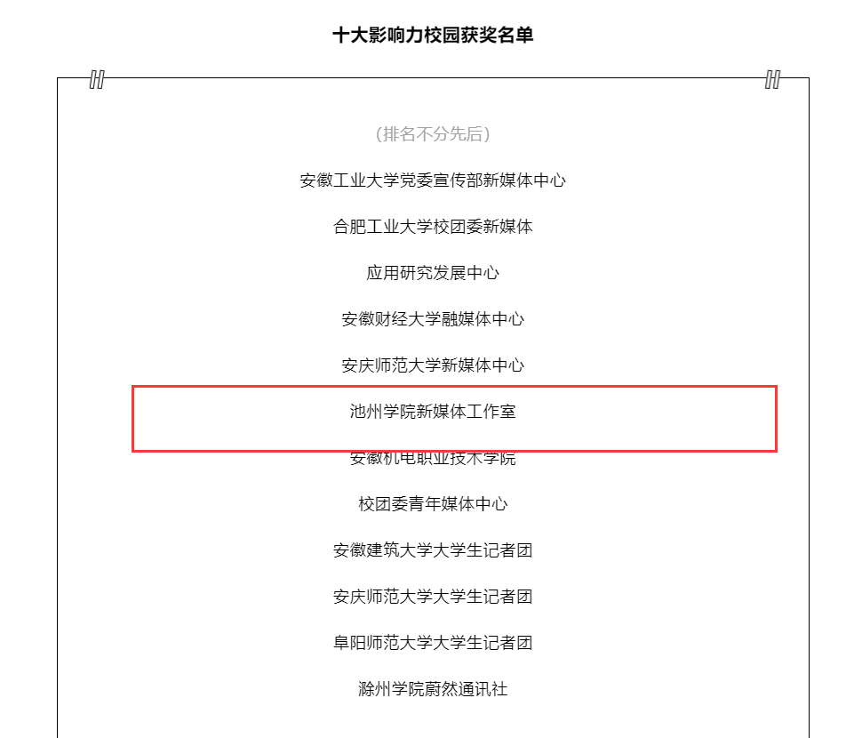 与此同时,11月5日至21日,beat365新媒体工作室在中国青年报·中青校媒(安徽)2022年度“新媒体作品征集”活动中荣获“十大影响力校园媒体”,六项优秀作品被表彰与征集展出。