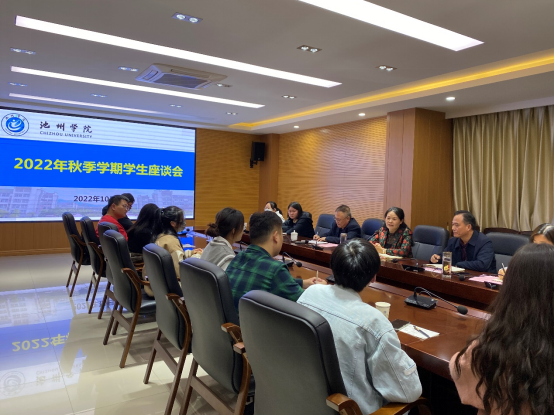 10月20日,院长郑兰荣在行政楼北二楼会议室主持召开2022年秋季学期学生座谈会。来自11个二级学院的22名学生代表参加座谈。学生处负责人及相关工作人员参加了会议。