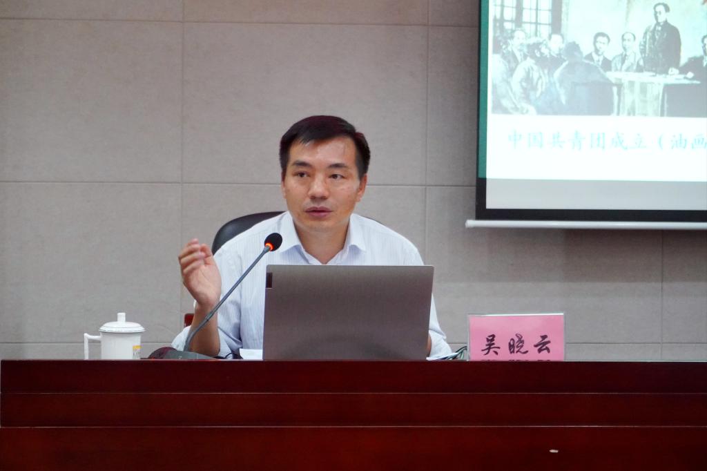 吴晓云以深厚的理论功底和缜密的逻辑思维,深刻阐释了学习领会习近平总书记在庆祝中国共青团成立100周年大会上讲话的重大意义,详细论述了习近平总书记重要讲话的丰富内涵和精神实质。他带领大家回顾了中国共青团百年奋斗的光辉历史和宝贵经验,强调在新征程上要继续加深对中国共青团工作使命担当的认识。他指出,新时代青年要努力学深学透习近平总书记的重要讲话精神,切实把握习近平总书记提出的“四点希望”、“五个模范”和“四个要求”,自觉把学习成效转化为增强工作本领、提高解决实际问题的水平,转化为建设新阶段现代化美好安徽的硬实举措和干事创业、攻坚克难的奋进力量。