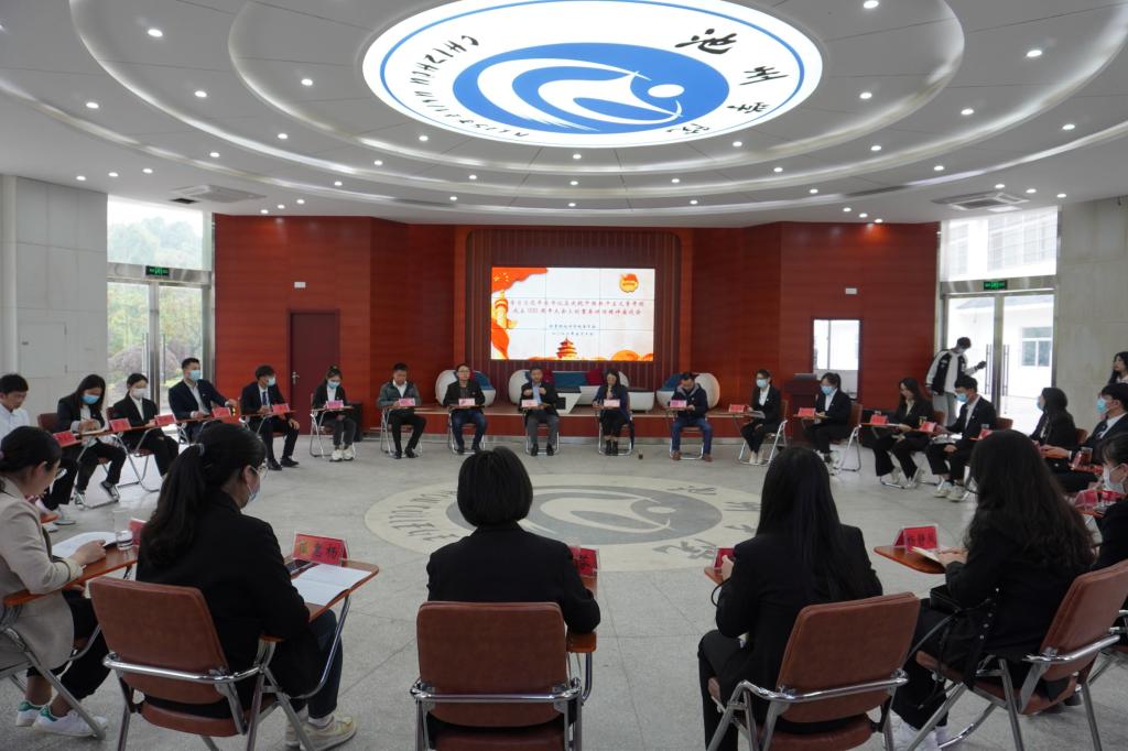 与会人员结合自身学习、工作作了交流发言。大家纷纷表示,观看了大会直播,聆听了习近平总书记的重要讲话,心潮澎湃,激动人心,备受鼓舞和启发,再次深刻认识到共青团的初心和使命就是坚定不移跟党走,为党和人民奋斗。作为党的助手和后备军,要坚定理想信念,自觉担当尽责,为建设特色鲜明的地方应用型高水平大学贡献青春力量。