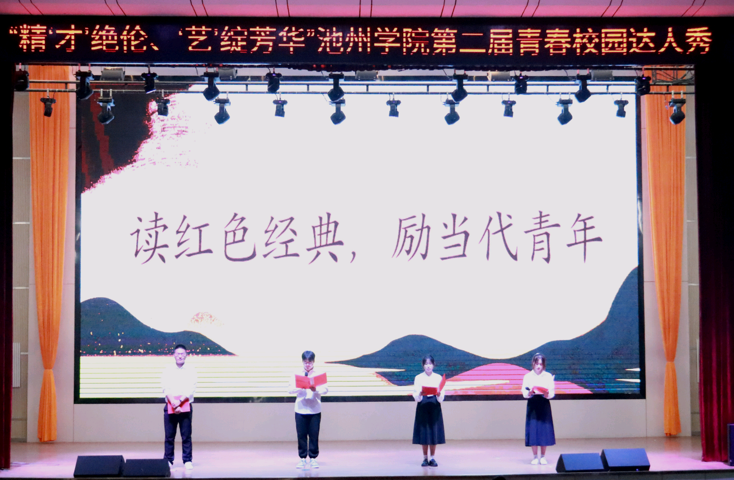 决赛中,优美动听的歌曲、幽默风趣的相声、声情并茂的朗诵,精彩夺目的武术……同学们投入演绎,尽显风采,精彩的表演不时获得了场下观众的阵阵掌声。经过两个多小时的激烈角逐,最终外国语学院张瑞等同学的配音表演《疯狂动物城》荣获一等奖,艺术与教育学院金雨霏同学的舞蹈《月之花语》、俞淑贤同学的古筝独奏《喜奔那达慕》和文学与传媒学院的朱源等同学的朗诵《家书里的夏明翰》等作品荣获二等奖,商学院张翔等同学的相声表演《相声新时代》等作品荣获三等奖。