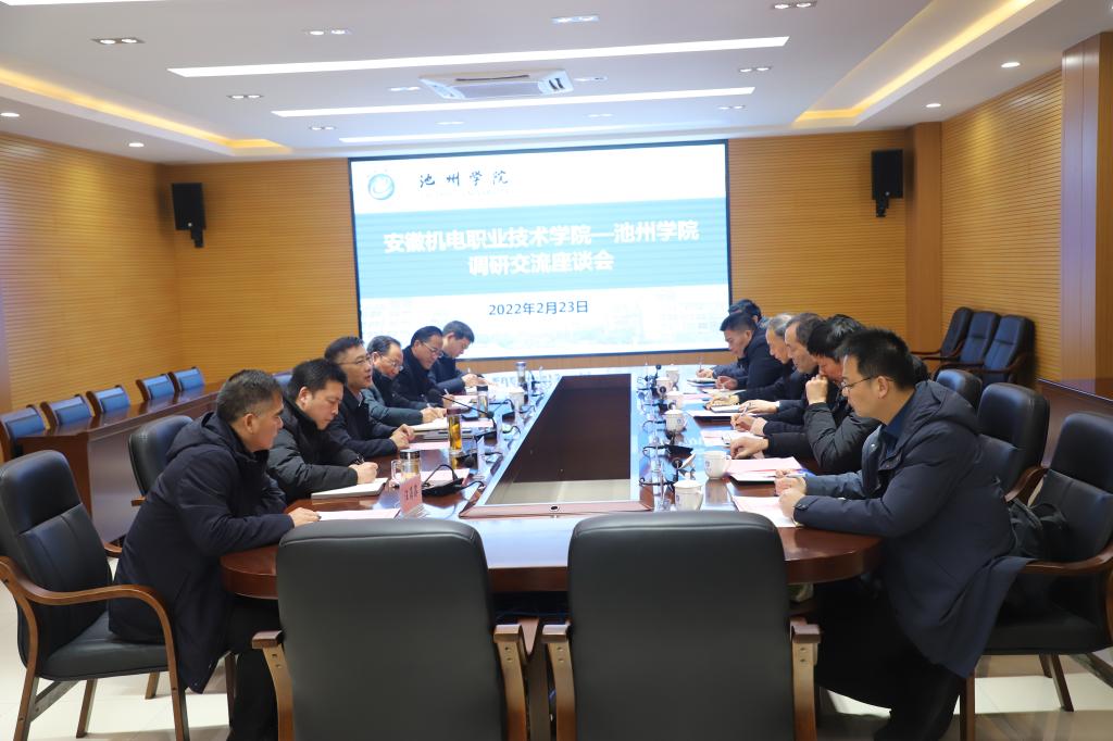 2月23日下午,安徽机电职业技术学院校长侯大寅一行来校调研交流。院长张立驰,副院长王延寿出席座谈交流。