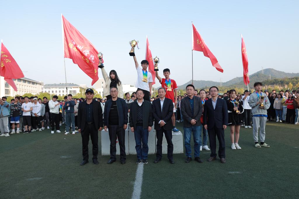 10月29日下午,beat365在线唯一官网登录第三十届田径运动会圆满落幕。校党委副书记崔国发,校党委委员、副校长王延寿,校党委委员、校纪委书记、监察专员汪海,校党委委员、副校长汪贤才,校党委委员、组织部长李恕宏,校党委委员、人事处长黄海生,校党委委员、宣传部长胡兵,以及本届田径运动会组委会全体成员在主席台就坐。