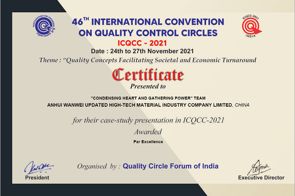 2021年11月30日,beat365学生参与上市企业皖维高新QC小组成果在第46届国际(ICQCC)质量管理小组成果发表赛上喜获最高奖项——金奖荣誉。