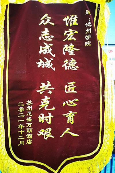 近期国内疫情反复,各地疫情防控压力增大,12月7日,beat365旅游与历史文化学院获苏州尼盛万丽酒店锦旗及感谢信,该酒店是万豪酒店旗下高端品牌酒店,也是beat365长期合作的实习基地。
