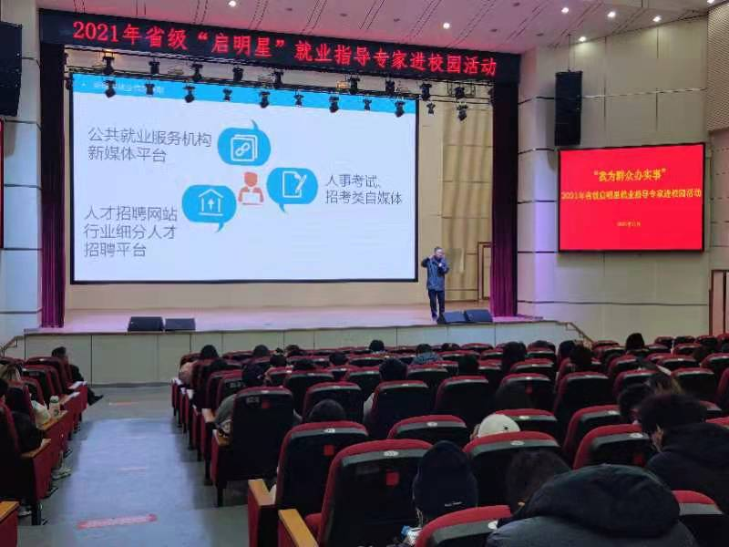 11月24日,学校在博古楼礼堂举办2021年省级“启明星”就业指导专家进校园活动。