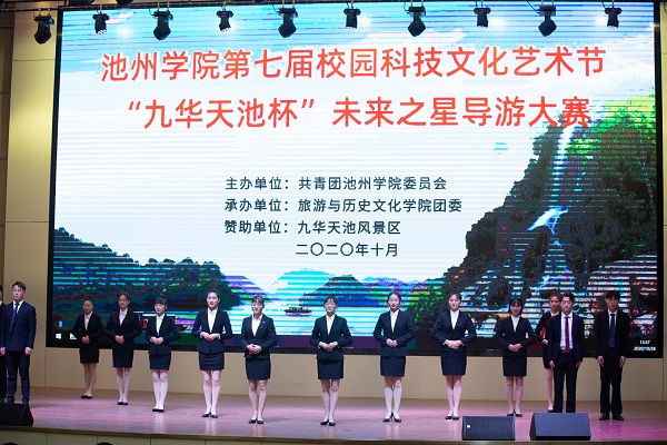 10月28日下午,由第七届校园科技文化艺术节组委会主办、旅游与历史文化学院团委承办的第五届“九华天池杯”未来之星导游大赛决赛在博古大礼堂圆满结束。党委副书记崔国发莅临现场指导。