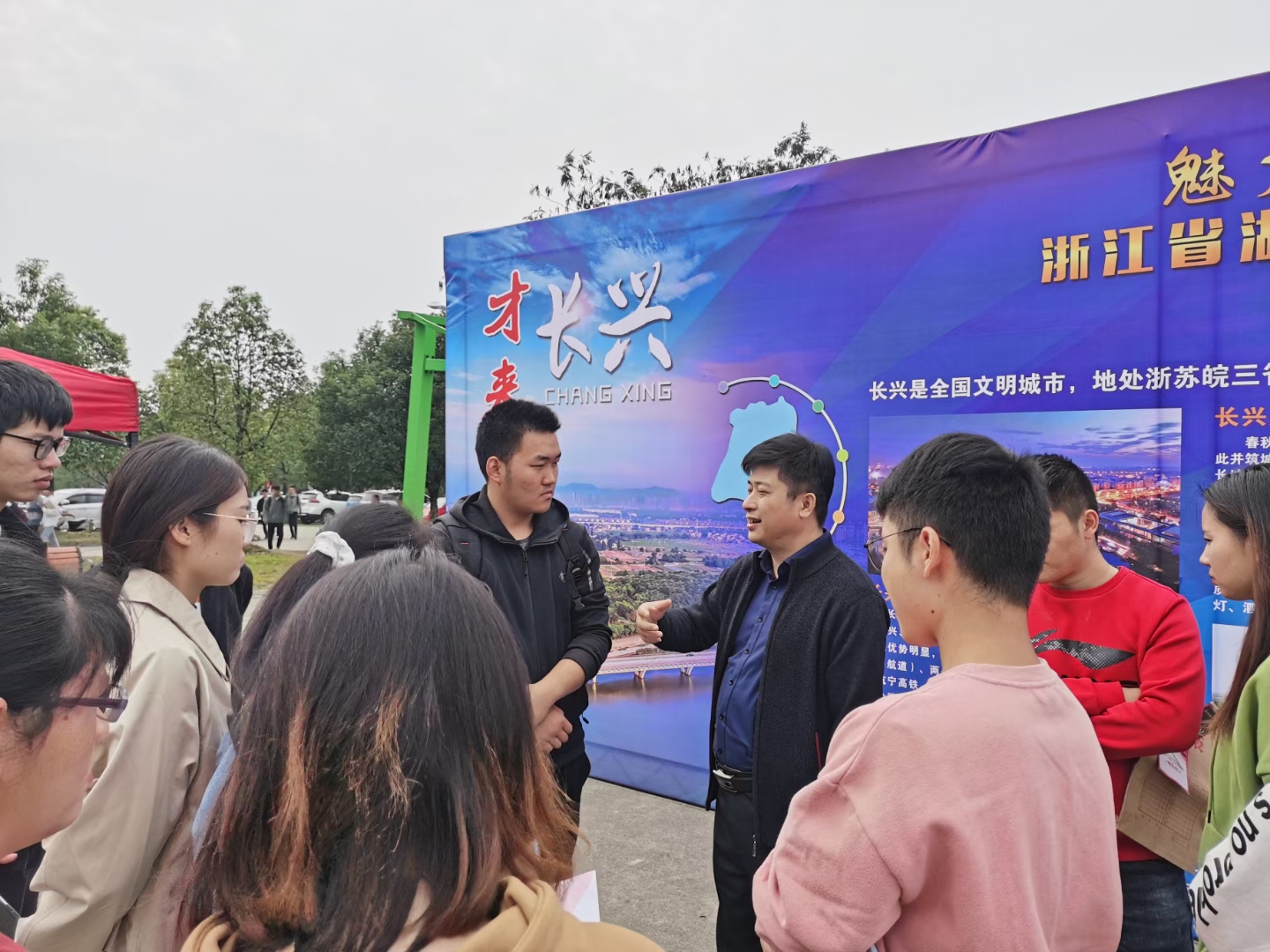 宣讲会在博古大礼堂举行。长兴县人社局党组副书记、副局长王飞作了县情介绍以及大学生就业创业的优惠政策。天能等公司代表上台逐一介绍了企业规模、业务,员工的福利待遇、培养方向等,为与会学生作了一场精彩的宣讲。
