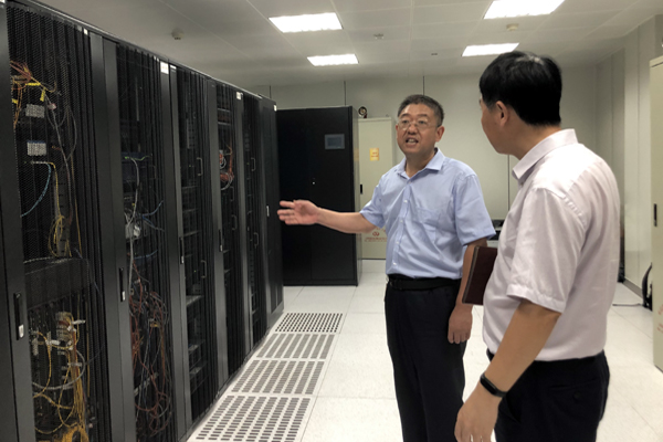 崔国发还实地查看了校园网络数据机房,了解机房使用和整体运行情况。