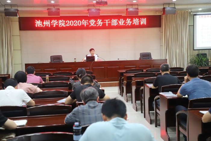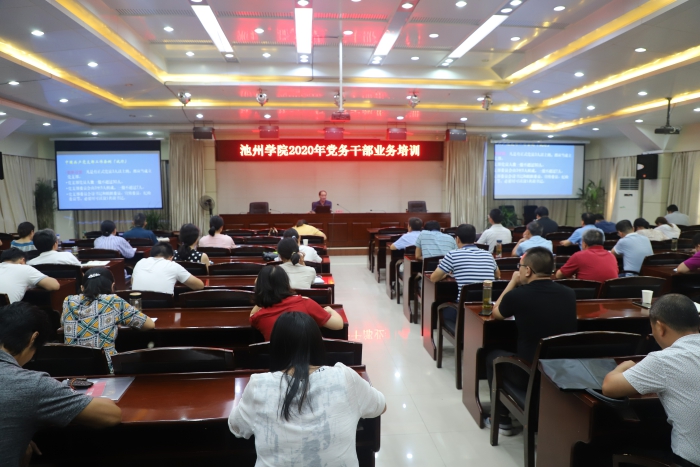 8月25日至26日,beat365在办公南楼二楼报告厅开展2020年党务干部业务培训,全校二级学院党委书记、专职组织员、党支部书记共80人参加培训。
