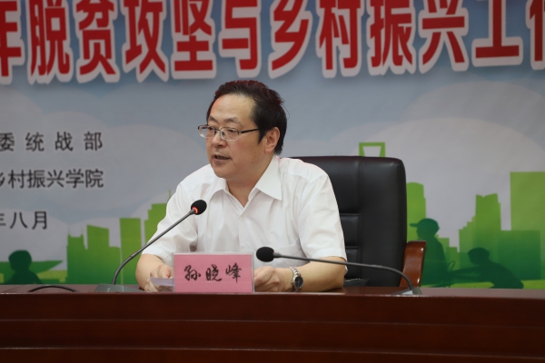 孙晓峰代表学校向参加本次培训的学员致以热烈的欢迎与诚挚的问候。他指出,实施乡村振兴战略是党中央做出的重大决策部署,是决胜全面建成小康社会、全面建设社会主义现代化国家的重大历史任务。2020年是决战决胜脱贫攻坚和全面建成小康社会的收官之年,巩固好脱贫攻坚成果,要不断推进全面脱贫与乡村振兴战略有效衔接。