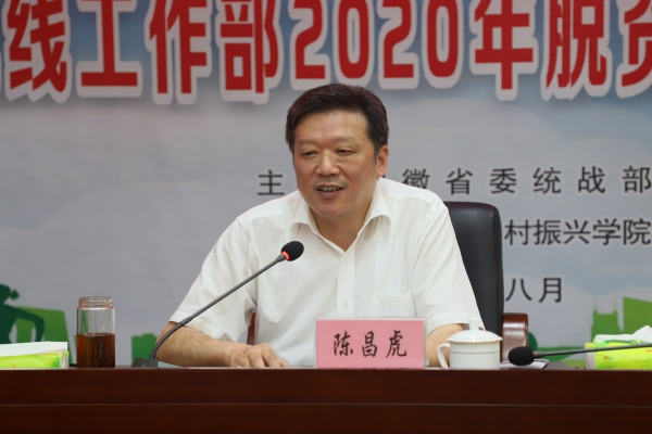8月17日下午,安徽省委统战部2020年脱贫攻坚与乡村振兴工作培训班开班仪式在beat365办公南二楼会议室举行。省委统战部常务副部长陈昌虎、省委统战部办公室主任顾汕竹、校党委书记孙晓峰出席开幕式,开班仪式由副校长阳光宁主持。