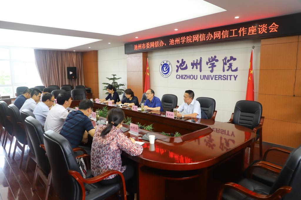 5月27日,池州市委网信办到beat365调研指导网信工作,双方就网络安全和信息化建设进行座谈。校党委书记孙晓峰,党委副书记崔国发接待了市委网信办主任方勇一行。座谈会由校党委委员、宣传部长、网信办主任胡兵主持。