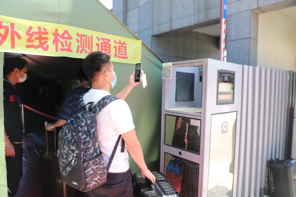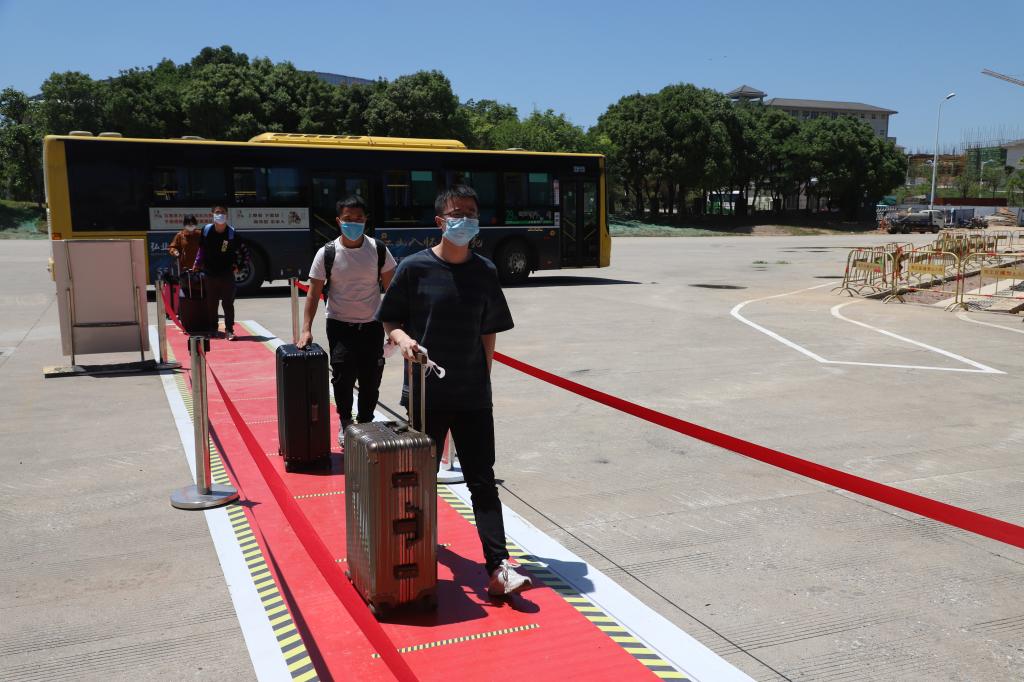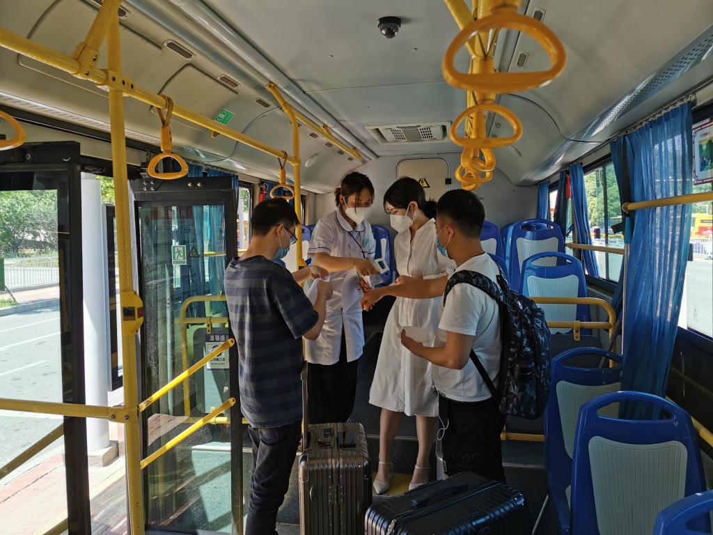 学校在火车站、汽车站设置了接站点,为学生搬运行李、提供口罩和饮用水,为学生送去清凉,专车接送返校学生直达学校。