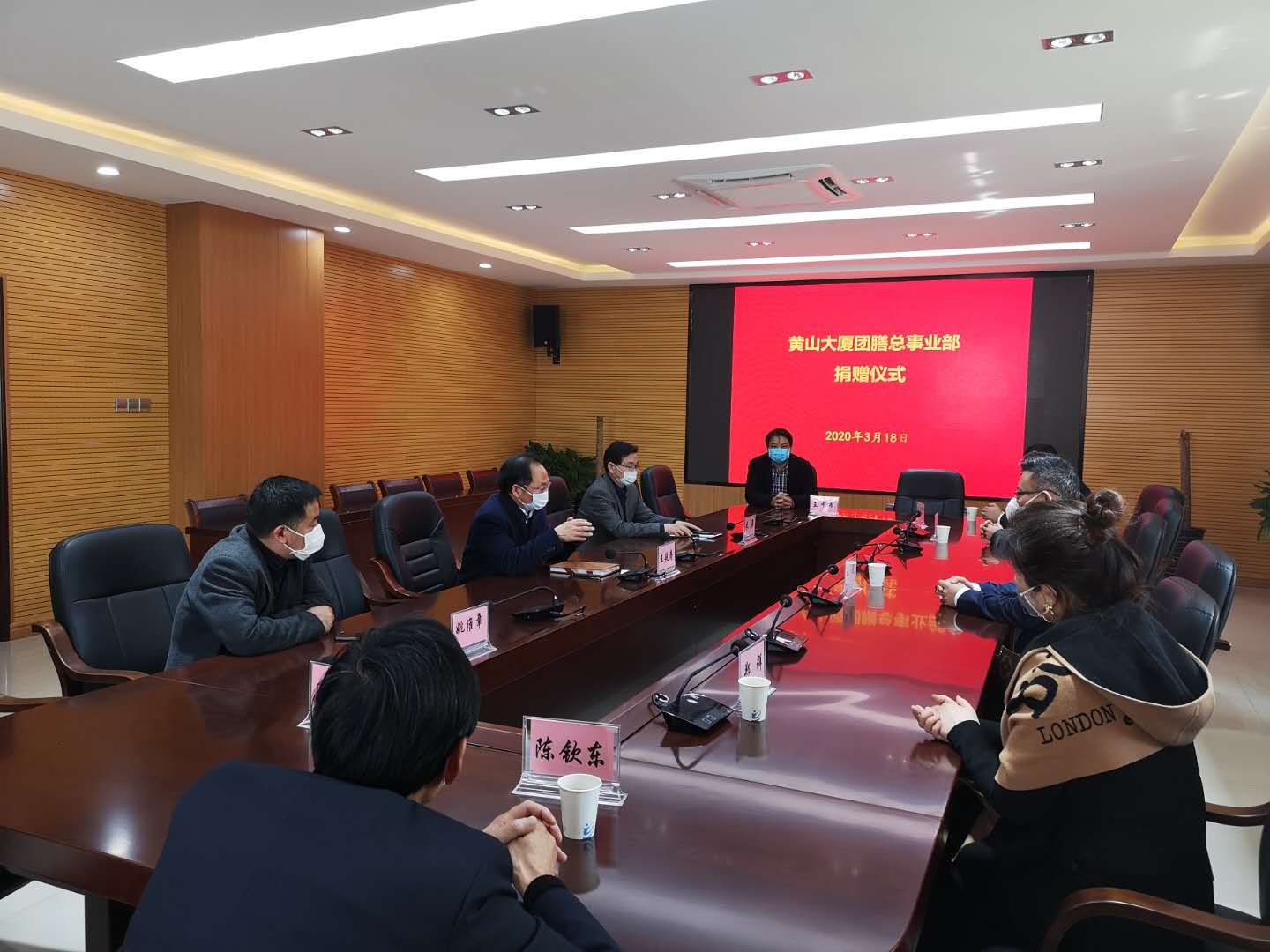 3月18日上午,黄山大厦团膳总事业部董事长王健一行五人来beat365,向beat365捐赠口罩、医用酒精、84消毒液、消毒喷壶等疫情防控急需物资。校党委书记孙晓峰、校长柳友荣会见了王健一行,副校长王延寿代表学校接受捐赠。