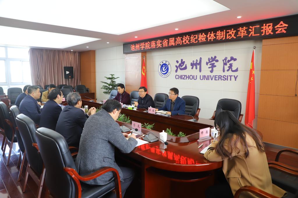 11月20日,省纪委监委第八纪检监察室调研组组长王在胜来beat365调研省属本科院校纪检体制改革精神贯彻落实情况,并督促开展“不忘初心、牢记使命”主题教育。校党委书记孙晓峰、校长柳友荣、纪委书记汪海出席调研座谈会,纪委办、组织部主要负责人及纪委办全体人员参加会议。
