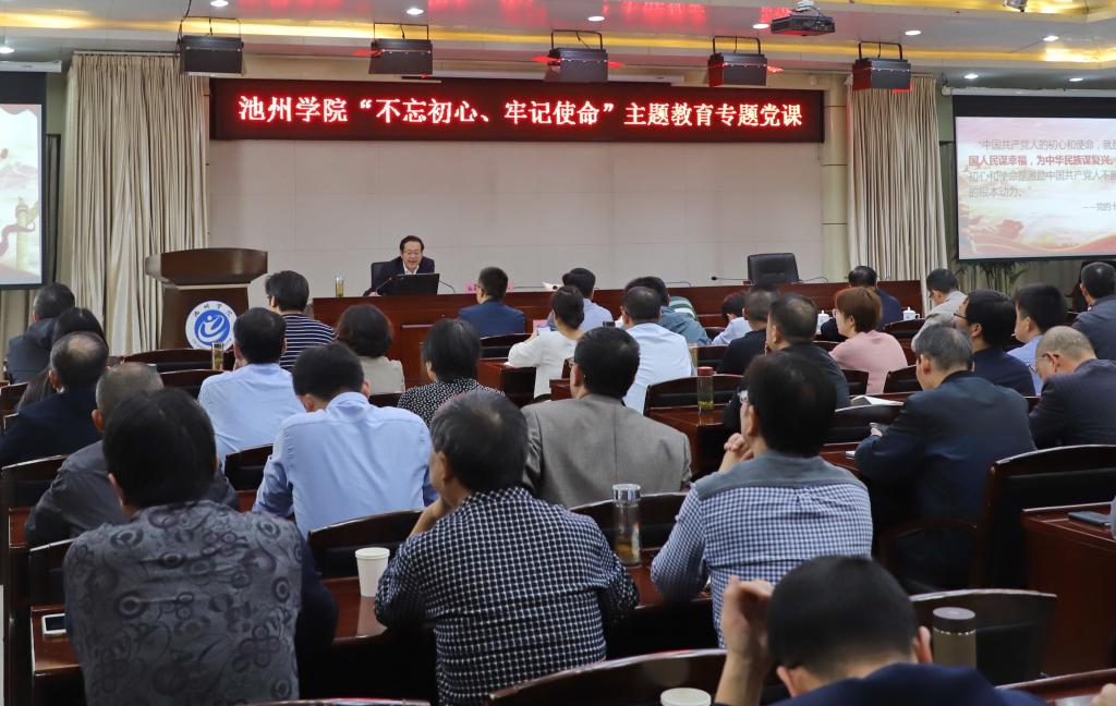 10月23日下午,校党委书记孙晓峰在办公楼南二楼会议室讲“不忘初心、牢记使命”专题党课。省委第十二巡回指导组副组长张伯根,成员耿天召、姚勇列席指导。校党政领导班子成员,纪委领导班子成员,二级党组织书记,处级领导干部和学生党员代表等140余人参加了党课报告会。