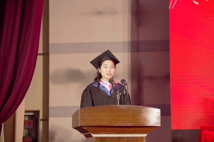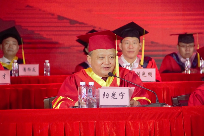 柳友荣代表全校师生员工,向2019届全体毕业生表示最热烈的祝贺。临别之际,柳友荣语重心长地为毕业生们送上临别叮嘱:希望大家能坚守责任,敢于担当,从自己做起,严于律己;希望大家保持正能量,播撒阳光,做一个充满正能量的人,在未来的生活中,少一些抱怨,多一些宽慰,少一些苛责,多一些鼓励;希望大家心存感恩,回馈社会,感恩父母的养育,母校的栽培,老师的提携和同学的鼓励,做一个心存感激的人;希望大家坚持学习,追求卓越,在困难中修身,踏实做事,诚实为人,立足本职,追求卓越。