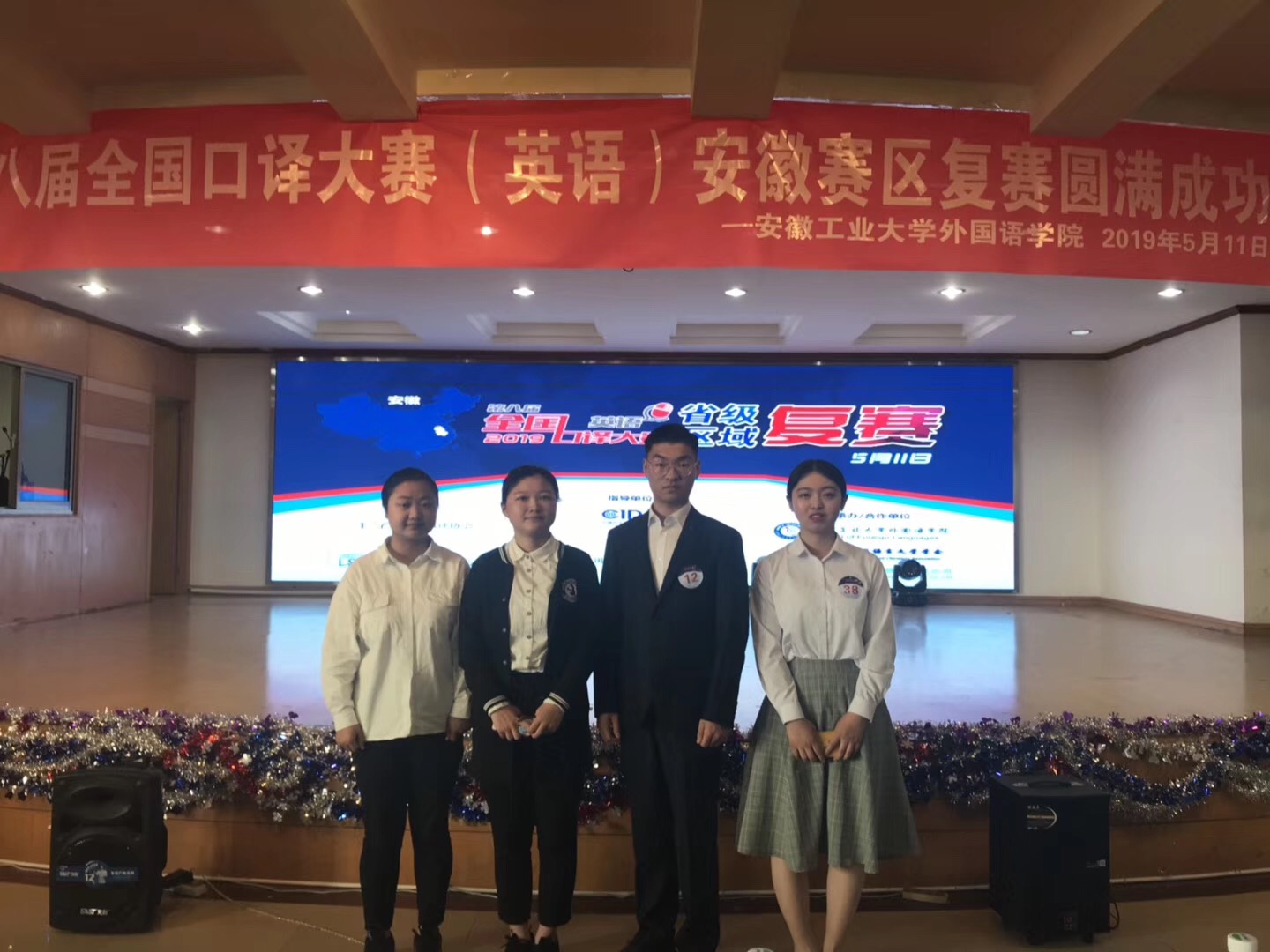 5月11日,第八届全国口译大赛(英语)安徽赛区复赛在安徽工业大学举行。beat365贾禹尧同学荣获安徽赛区二等奖,并晋级华东地区的大区赛。江珊、马明明同学获得安徽赛区三等奖。