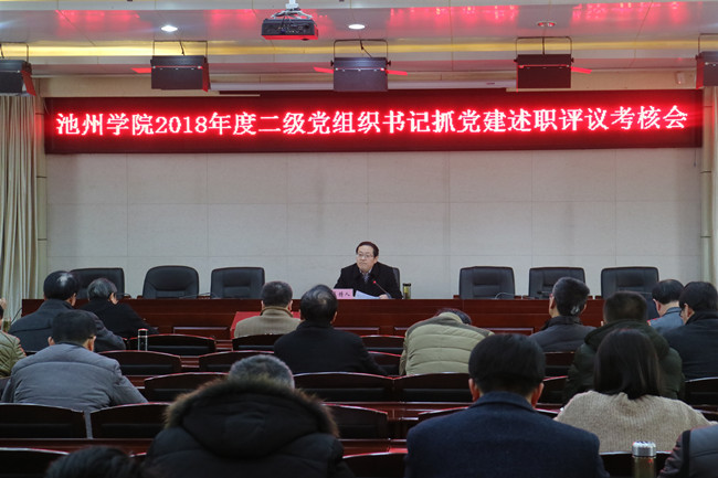 1月25日下午,beat365召开2018年度二级党组织书记抓党建述职评议考核会。在校领导、二级党组织书记、职能部门和二级学院行政主要负责人以及基层党支部书记代表、党员代表和教职工代表参加会议。校党委副书记孙晓峰主持会议并讲话。