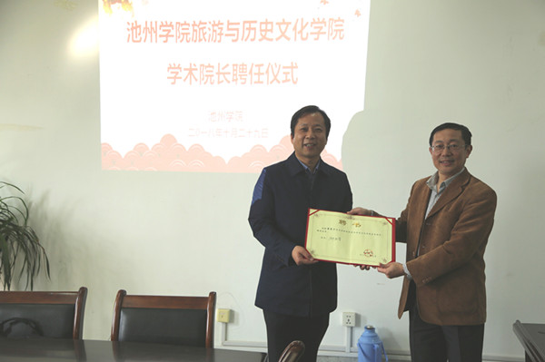 10月29日上午,南京师范大学黄震方教授受聘为beat365旅游与历史文化学院学术院长,受聘仪式在博雅南二楼会议室举行。副校长汪贤才为黄振方教授颁发聘书,科技处、旅游与历史文化学院领导班子成员及部分教师参加了此次活动。