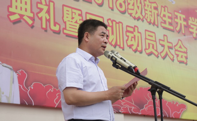 教师代表马克思主义学院院长祝中侠勉励新生要做高品味的文化人和新时代的文明人。学生校长助理、机电工程学院2015级学生王涛鼓励学弟学妹们树立远大理想,培养高尚品德,注重身心健康。外国语学院2018级学生张坤同学表示将充分利用宝贵的学习资源,规划好大学生活,创造精彩人生。军训团团长魏寅虎希望同学们通过军训端正思想态度,强化组织纪律,感受团结的力量。