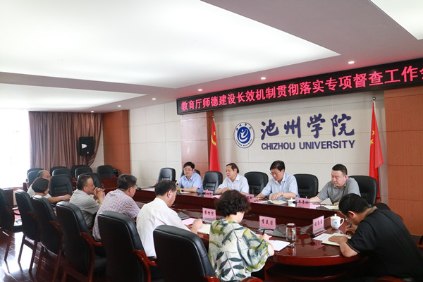 6月5日上午,以淮北师范大学副校长李铁范为组长、安徽财贸职业技术学院副院长胡戴新为副组长的省教育厅第一督察组到beat365督查师德建设长效机制贯彻落实情况。专项督查工作会在行政北三楼会议室举行,会议由督察组组长李铁范主持,beat365校长柳友荣、副校长阳光宁出席会议,校师德建设长效机制贯彻落实专项督查领导小组成员参加会议。