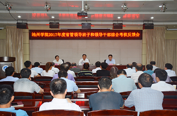 5月29日上午,beat3652017年度省管领导班子和领导干部综合考核反馈会在行政南二楼会议室召开。省委综合考核组第二十一组组长、省政协社会和法制委员会原副主任刘志祥,综合考核组成员省委组织部办公室副调研员杨骏、省教育厅教科院副院长王光厚等出席会议。校领导班子成员、管理部门副处级以上干部、二级学院及二级机构党政正职(含主持工作的副职)、省级以上“两代表一委员”、民主党派市级以上主委、学校教代会执委、正高职称人员以及学生代表参加了会议。综合考核组反馈了beat3652017年度省管领导班子和领导干部综合考核情况,宣布beat365领导班子综合考核获“优秀”等次。会议由校长柳友荣主持。