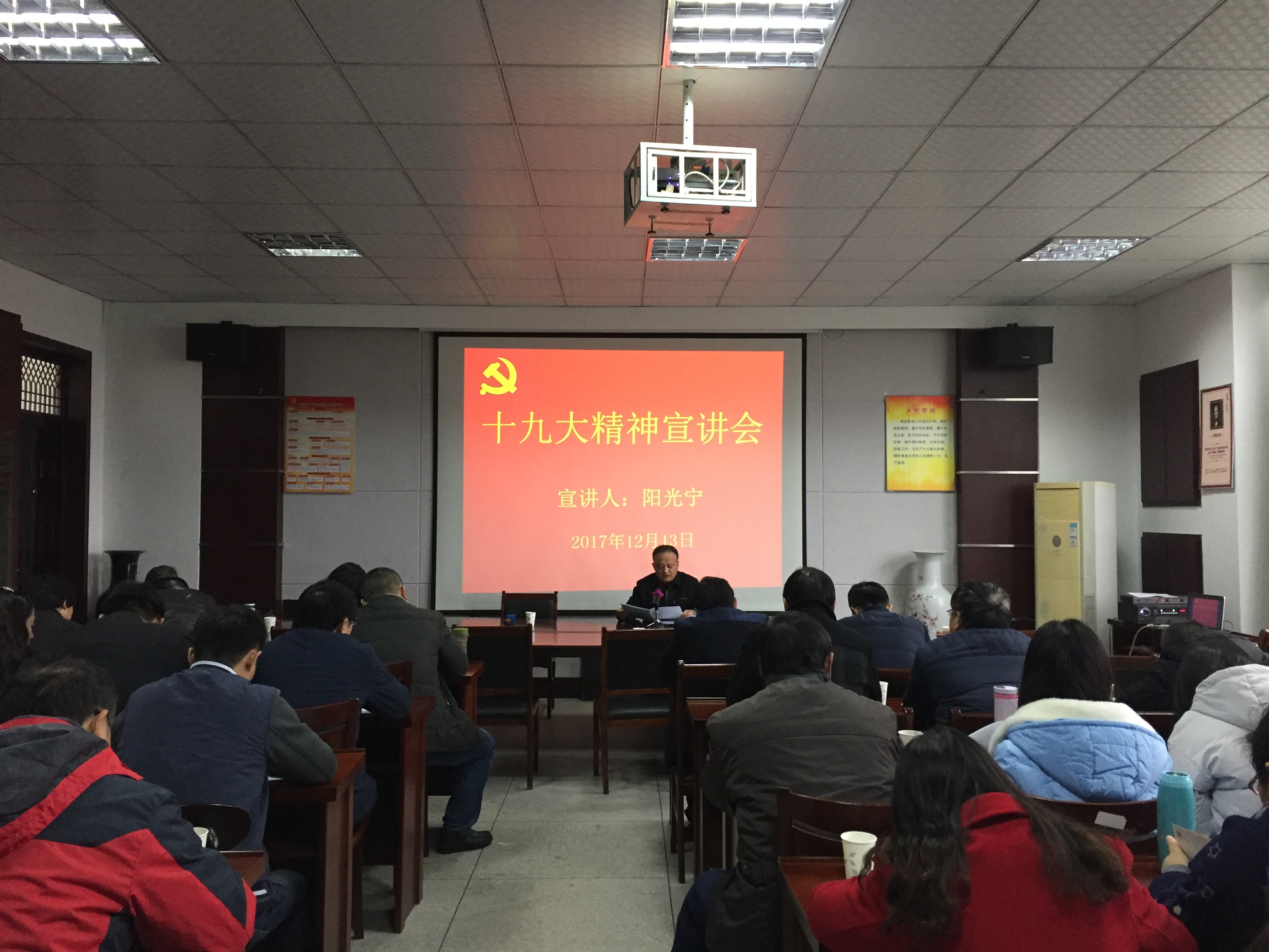 阳光宁围绕如何充分认识十九大召开的意义、如何全面准确领会十九大精神展开宣讲,从党的十九的主题和主要成果、习近平新时代中国特色社会主义思想、过去五年的历史性成就和历史性变革、中国特色社会主义进入新时代、新时代中国特色社会主义的新部署、新时代中国特色社会主义党的建设新要求等六个方面进行了深刻阐释。