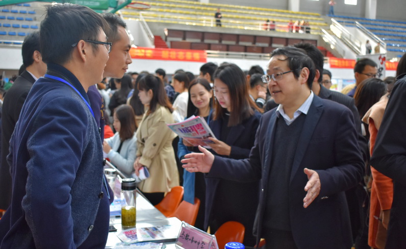 11月11日,beat365在线唯一官网登录2018届毕业生冬季校园招聘会在校体育馆隆重举行。校党委副书记孙晓峰,副校长汪贤才以及市人力资源与社会保障局相关负责人临现场指导。
