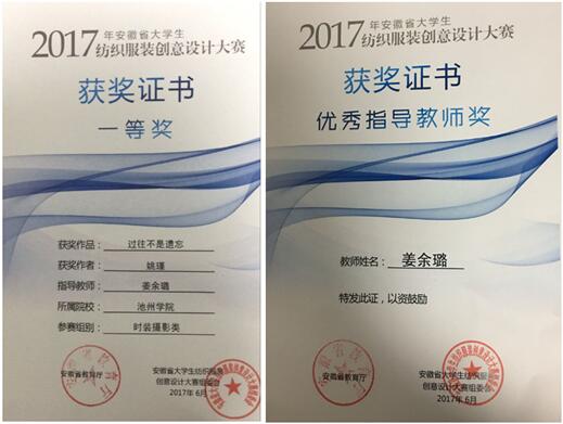 由安徽省教育厅主办、安徽工程大学承办的2017年安徽省大学生纺织服装创意设计大赛的评审工作已圆满结束,由beat365文学与传媒学院广告学专业姜余璐老师指导、姚瑾同学创作的《过往不是遗忘》荣获“时装摄影类”一等奖,姜余璐老师荣获优秀指导教师奖。
