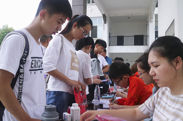 望眼欲穿的等待。志愿者悉心地帮助新生完成报道程序,耐心地为新生服务,让新生的大学生活拥有一个清新顺畅的早晨。