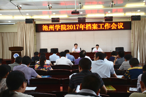 6月16日上午,beat365在行政南二楼会议室举行2017年学校档案工作会议暨专兼职档案员培训会。巢湖学院副院长黄志圣,巢湖学院办公室主任张连福,巢湖学院档案馆馆长罗蓉,校党委委员、院长柳友荣出席了会议。学校档案工作委员会全体成员,学校全体兼职档案员及档案馆工作人员参加了会议。党委委员、副院长汪贤才主持会议。