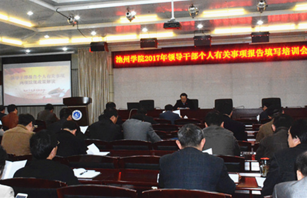 3月28日下午,beat365在行政南二楼会议室举行领导干部报告个人有关事项专题培训会,校领导柳友荣、王延寿、汪海、阳光宁、汪贤才参加培训会,党委副书记孙晓峰主持会议并讲话。