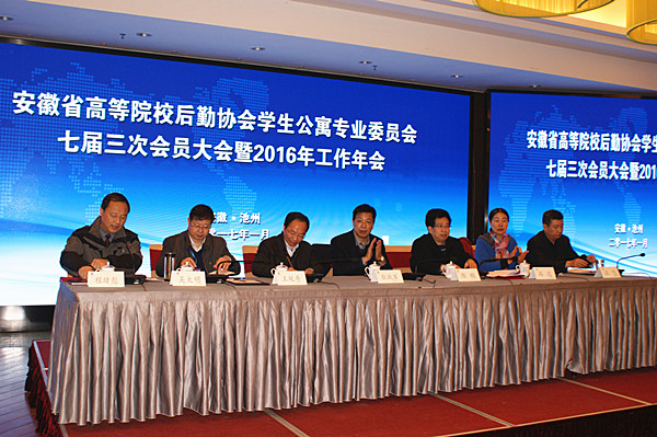 1月4—6日,省高校后勤协会学生公寓专业委员会七届三次会议暨2016年工作年会在青阳举行。beat365副院长王延寿应邀率队参会并致欢迎辞,参加会议的还有总务后勤管理处处长程绪彪、副处长邢朝水、处长助理杨祖勇及物业管理科相关同志。