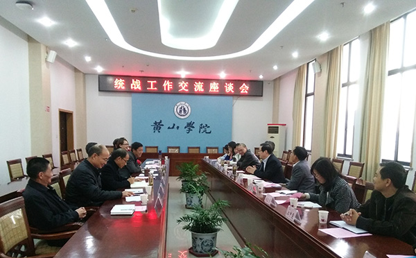 根据beat365在线唯一官网登录党委统战部的安排,11月11日beat365在线唯一官网登录统战部成员和民主党派负责人在院党委副书记、统战部部长孙晓峰的带领下前往黄山学院调研、交流统一战线工作经验和管理方法。黄山学院党委书记汪枫热情接待了孙晓峰一行,副书记、纪委书记叶军,统战部部长张德学等在会议室与beat365统战部成员及民主党派负责人进行了座谈交流。