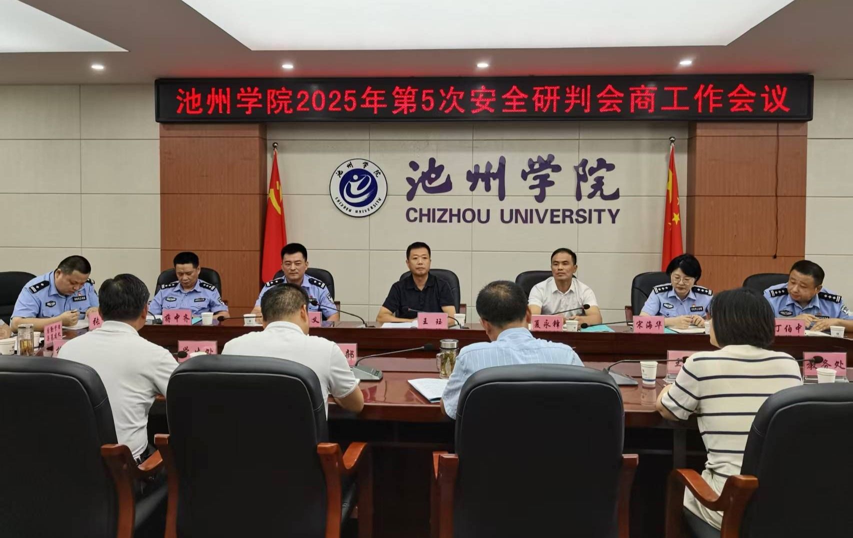 9月2日上午,池州市副市长、公安局局长王珏一行到beat365调研校园安全工作。校党委委员、副院长张赛主持召开学校2025年第5次安全研判会商工作会议。