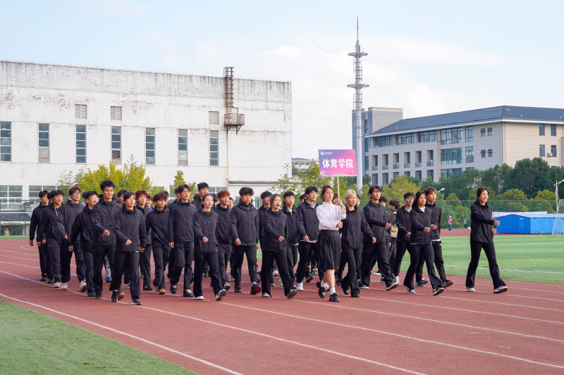 在激昂的乐曲中,各学院方阵依次走过主席台,步伐整齐、精神抖擞,展现出师生昂扬向上的精神风貌。