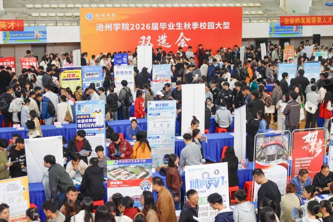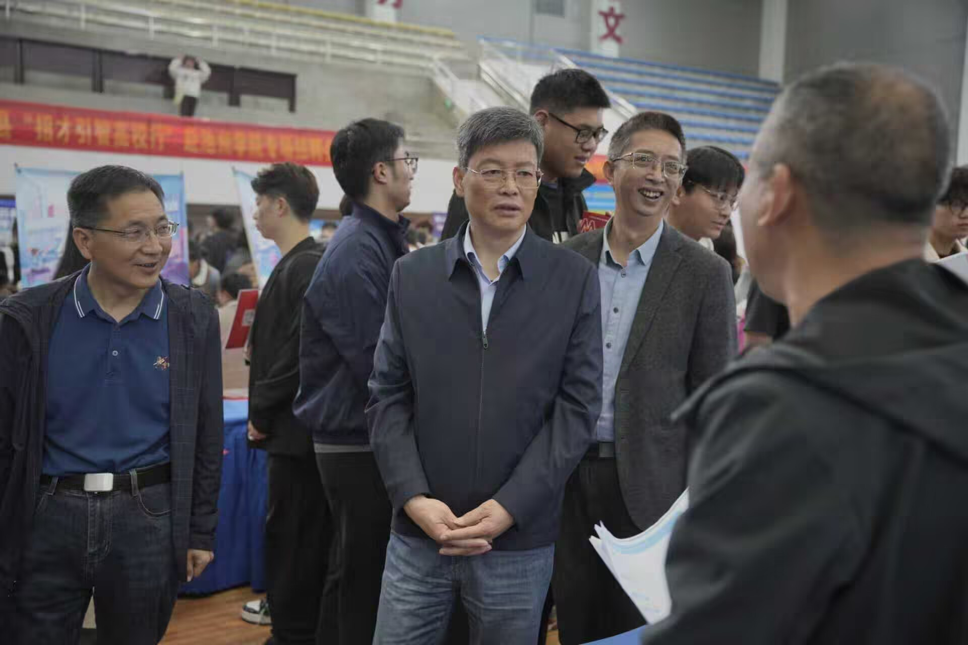为学习宣传贯彻党的二十届四中全会精神,深入落实习近平总书记关于高校毕业生就业工作的重要指示精神,充分发挥校园招聘主渠道作用,11月1日,学校联合池州市委人才工作局、池州市人力资源和社会保障局在beat365在线唯一官网登录体育馆举行2026届毕业生秋季校园大型双选会。校党委副书记盛国星、池州市委人才工作局局长林贤中、池州市就业创业服务中心主任纪平前往现场指导。