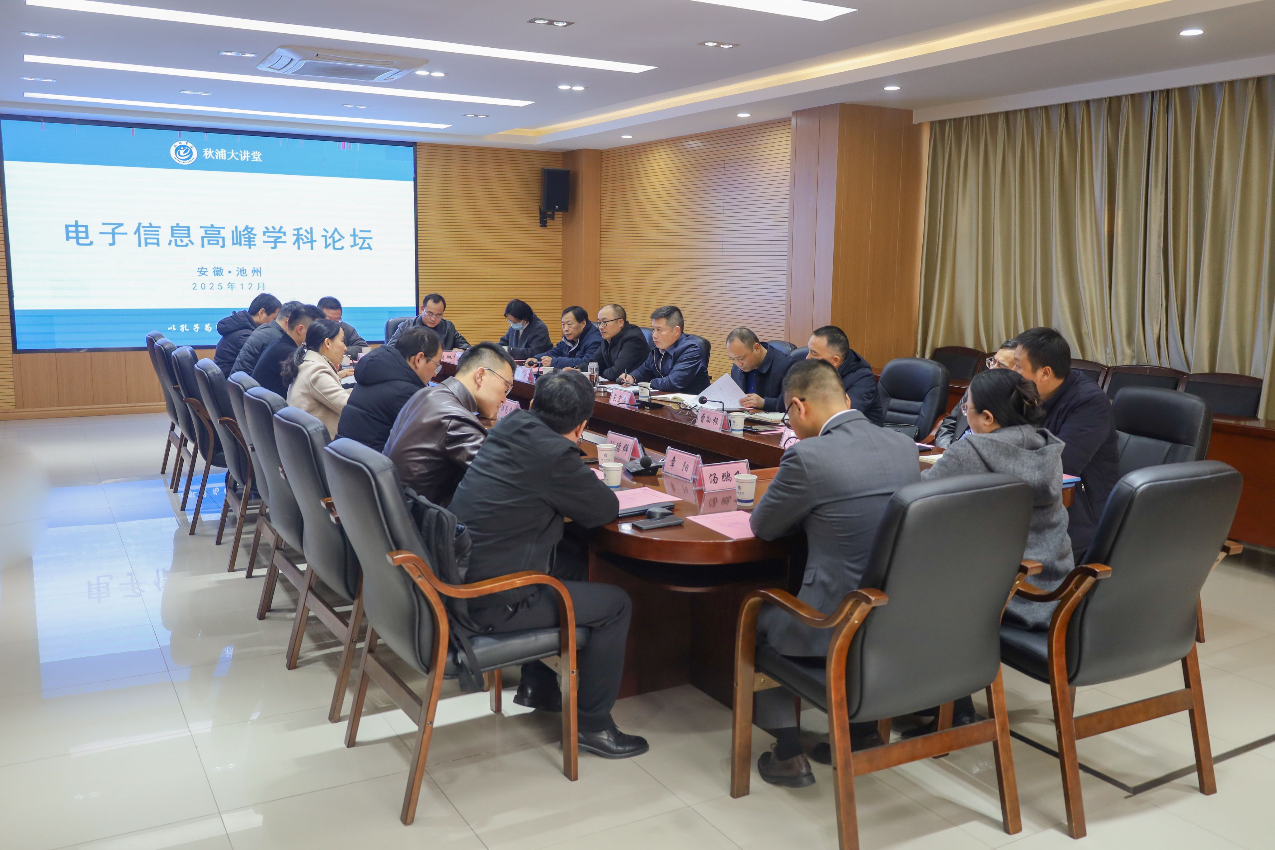 12月17日下午,beat365在线唯一官网登录“秋浦大讲堂”之“电子信息高峰学科论坛”在行政北二楼会议室顺利召开。池州市经开区管委会、市工信局、市发改委等政府部门负责人,半导体行业重点企业代表、行业导师,校党委委员、副院长李明玲等共同出席论坛。