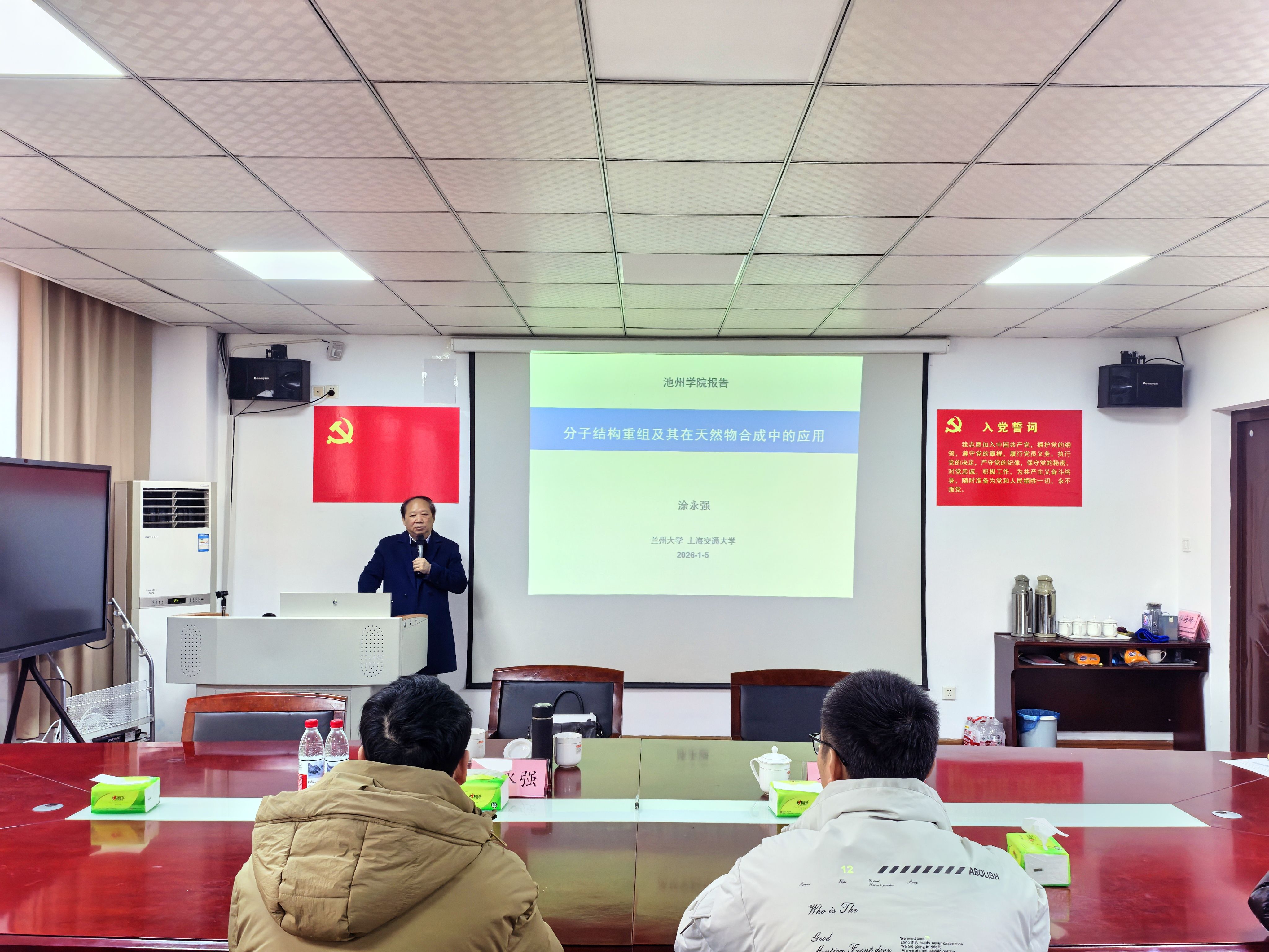 1月5日上午,beat365材料与环境工程学院“党建引领发展 学术促进成长”学术大讲堂在逸夫南楼会议室举行。兰州大学与上海交通大学双聘教授涂永强院士应邀作题为“分子结构重组及其多环萜类天然产物合成”的学术讲座。讲座由校党委委员、副院长李明玲主持。